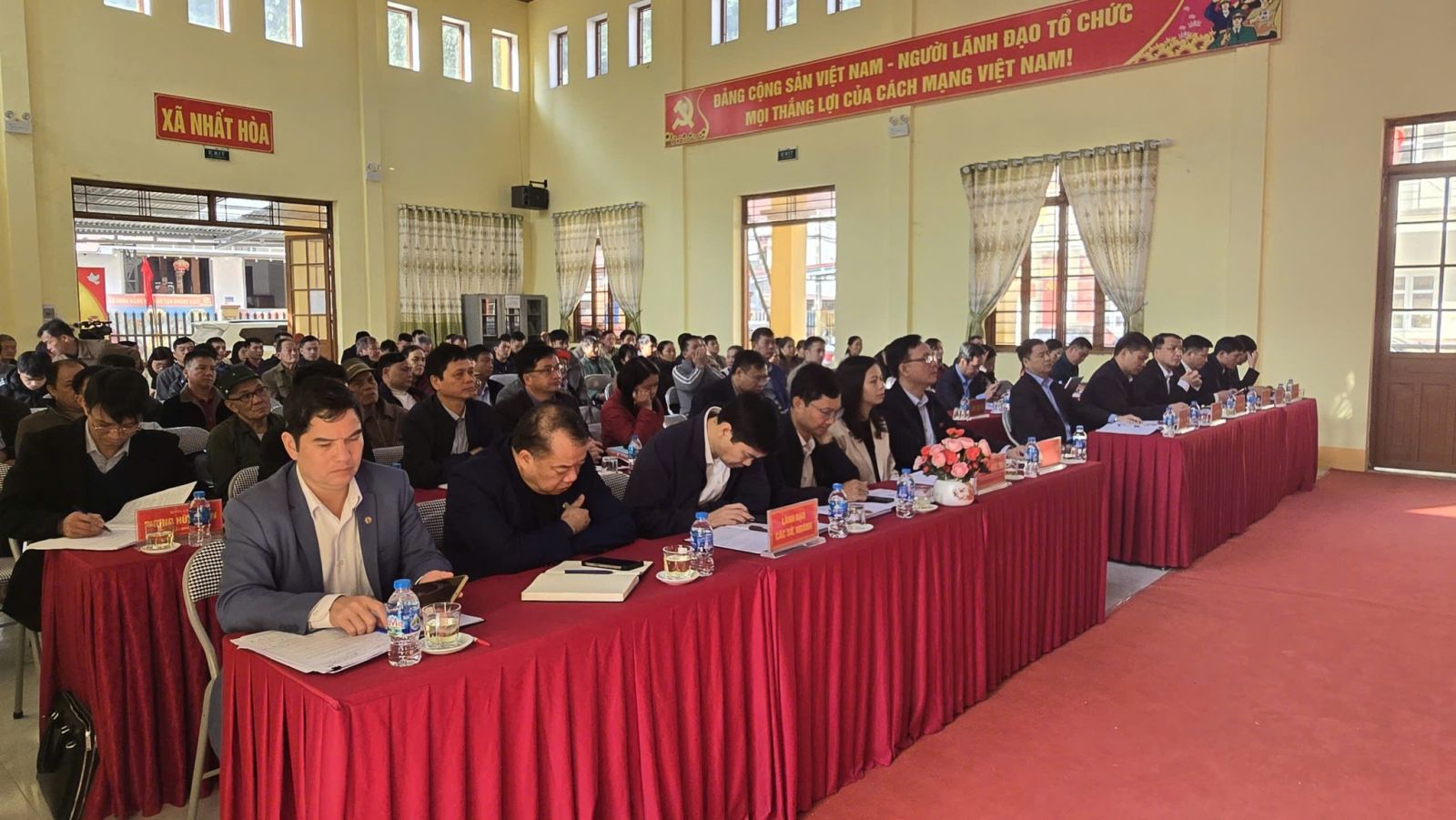 Tham dự hội nghị tiếp xúc cử tri có đại diện lãnh đạo một số sở, ban, ngành của tỉnh; Đại diện Đảng ủy, HĐND, UBND, UBMTTQ xã Nhất Hòa.