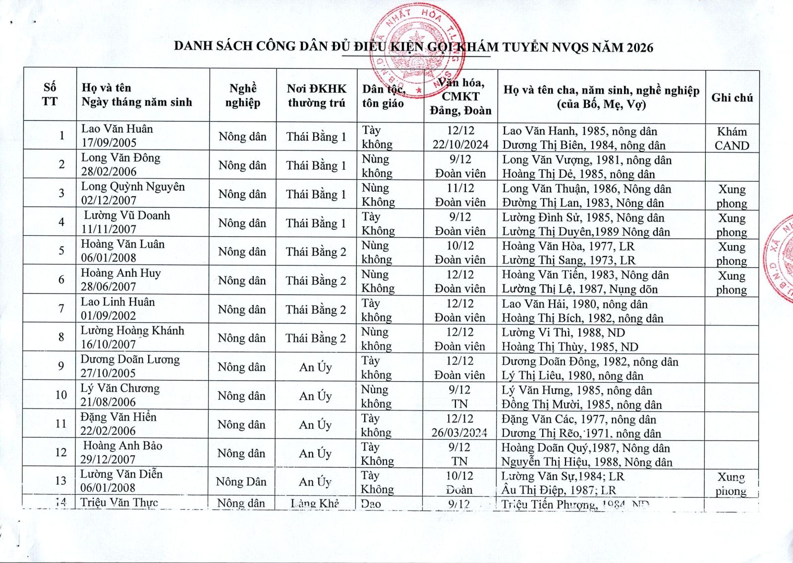 Thứ sáu, 07/11/2025 | 15:36 A- A A+ | Danh sách những công dân đủ điều kiện gọi khám tuyển NVQS năm 2026 Chia sẻ Đọc bài Lưu Danh sách những công dân đủ điều kiện gọi khám tuyển NVQS năm 2026