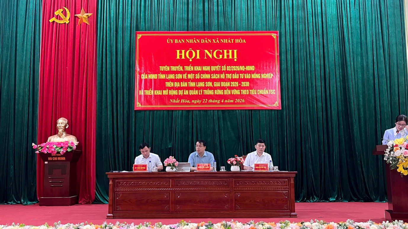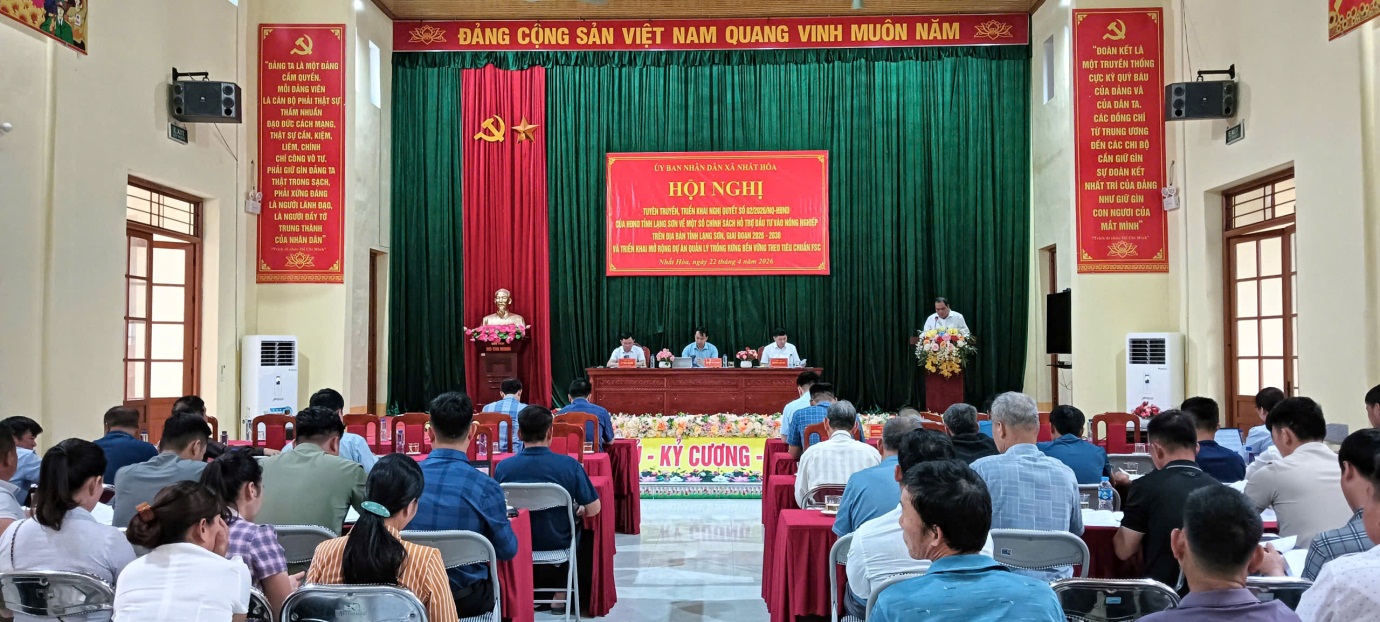 Sáng ngày 22/4/2026, UBND xã Nhất Hoà tổ chức hội nghị triển khai thực hiện Nghị quyết số 02/2026/NQ-HĐND của HĐND tỉnh Lạng Sơn về một số chính sách hỗ trợ đầu tư vào nông nghiệp trên địa bàn tỉnh giai đoạn 2026–2030.