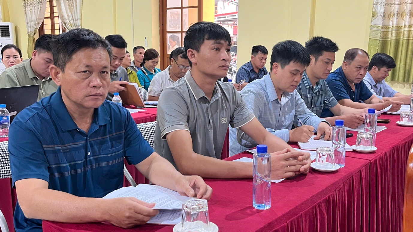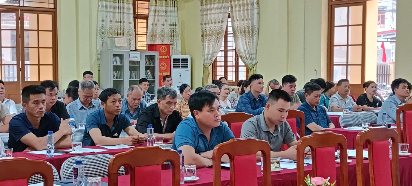 Dự hội nghị có các đồng chí lãnh đạo Đảng ủy, HĐND, UBND xã; cán bộ, công chức chuyên môn; đại diện các ban, ngành, đoàn thể và bí thư chi bộ, trưởng thôn, trưởng ban công tác mặt trận, các hợp tác xã, hộ dân có nhu cầu tham gia thực hiện dự án trên địa bàn.