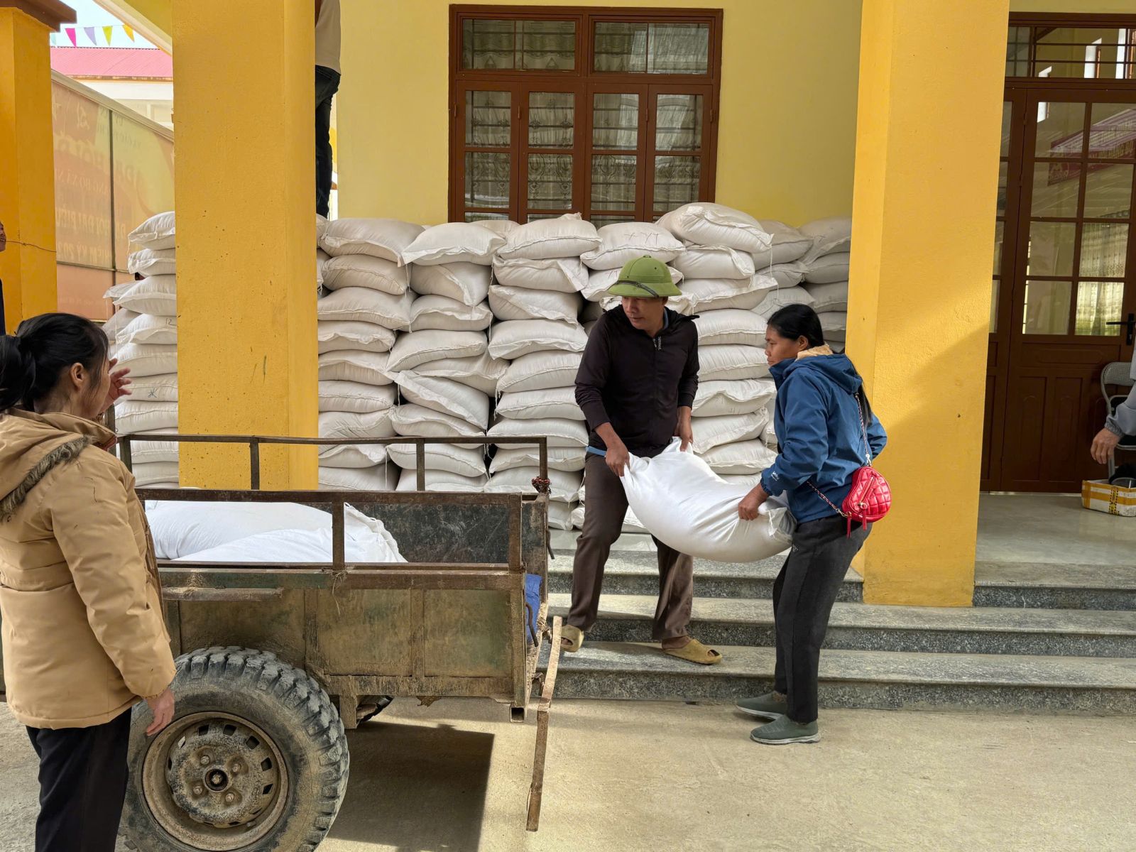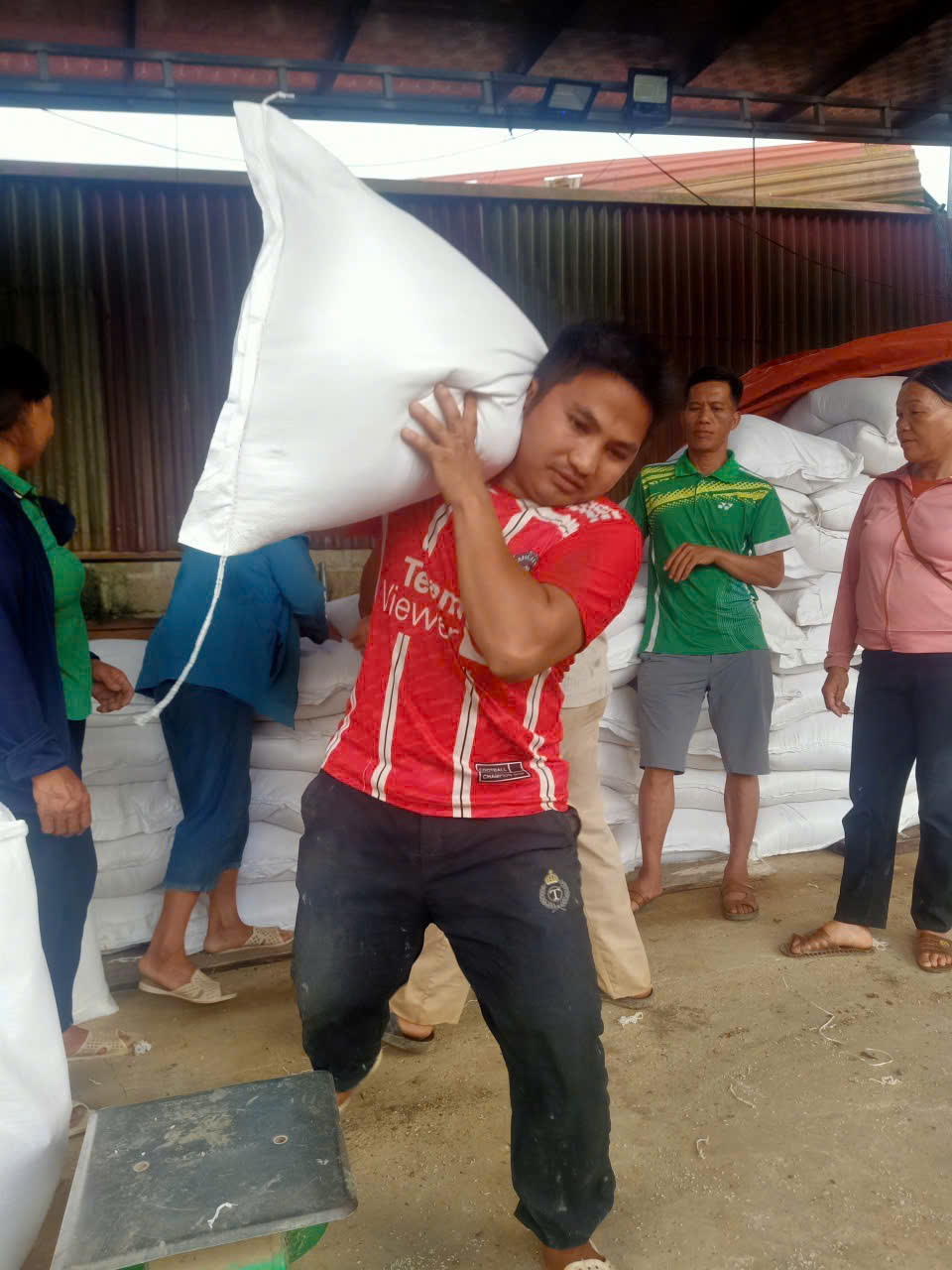 Xã Nhất Hòa cấp phát gạo cứu trợ người dân sau bão số 11