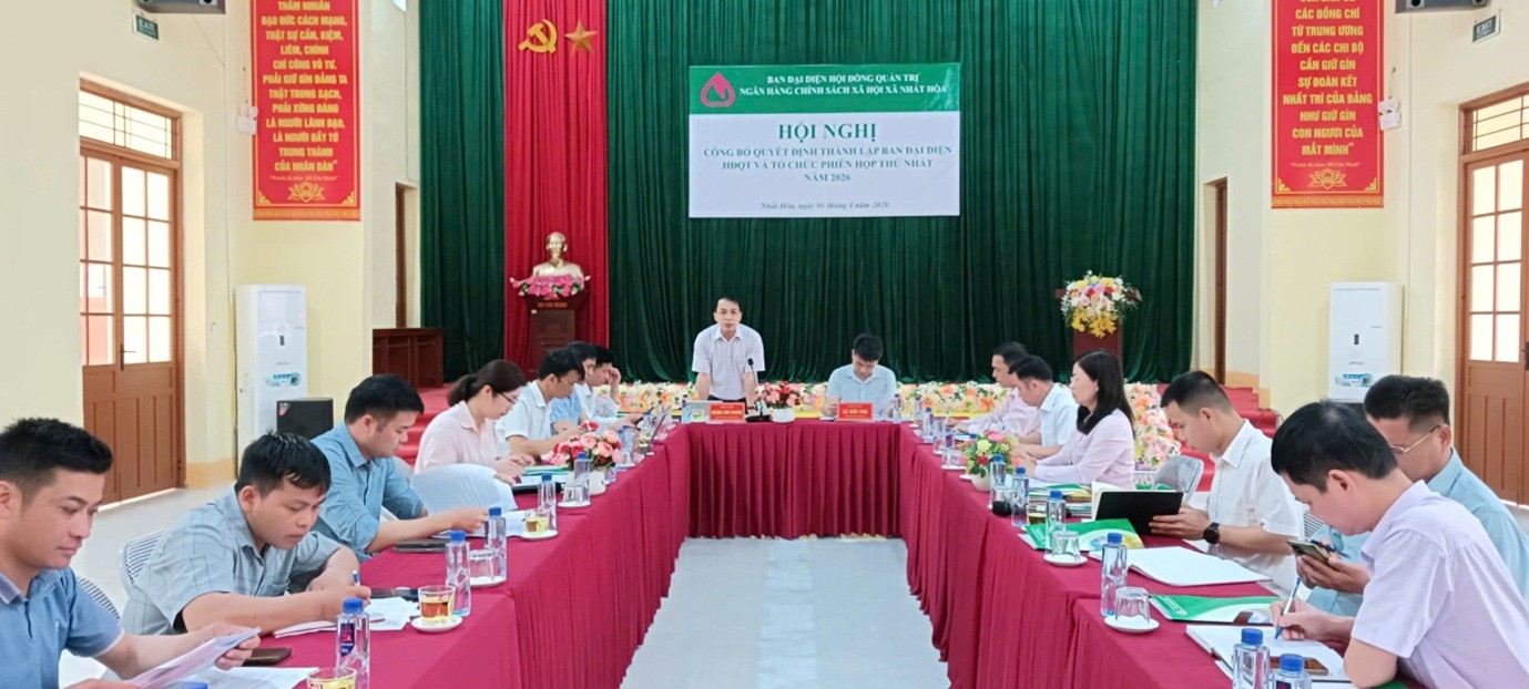 Sáng ngày 06/4/2026 xã Nhất Hoà tổ chức Hội nghị công bố Quyết định thành lập Ban đại diện Hội đồng quản trị Ngân hàng Chính sách xã hội (CSXH) và tổ chức phiên họp quý I mở rộng. Tham dự hội nghị có đồng chí đồng chí Lê Đức Thọ, Phó bí thư Thường trực Đảng uỷ xã, đồng chí Dương Hữu Phong, Phó bí thư Đảng uỷ, Chủ tịch UBND xã, lãnh đạo HĐND, UBND, UBMTTQ, các ban ngành, đoàn thể, trưởng các thôn trên địa bàn.