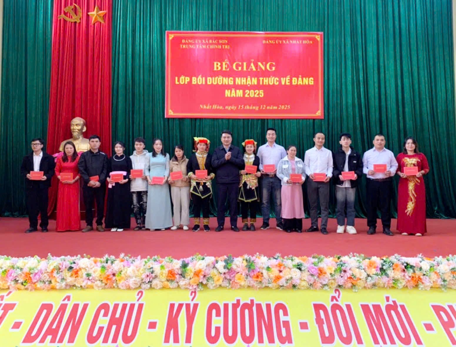 Thực hiện kế hoạch đào tạo, bồi dưỡng lý luận chính trị năm 2025, từ ngày 08/12 đến ngày 12/12/2025, Trung tâm Chính trị - Đảng ủy xã Bắc Sơn đã phối hợp với Đảng ủy xã Nhất Hòa tổ chức lớp bồi dưỡng nhận thức về Đảng cho 44 quần chúng ưu tú trên địa bàn xã. Đây là hoạt động có ý nghĩa thiết thực nhằm trang bị kiến thức lý luận chính trị, bồi dưỡng động cơ phấn đấu vào Đảng cho quần chúng ưu tú, góp phần tạo nguồn kết nạp đảng viên mới có chất lượng cho Đảng bộ xã Nhất Hòa.