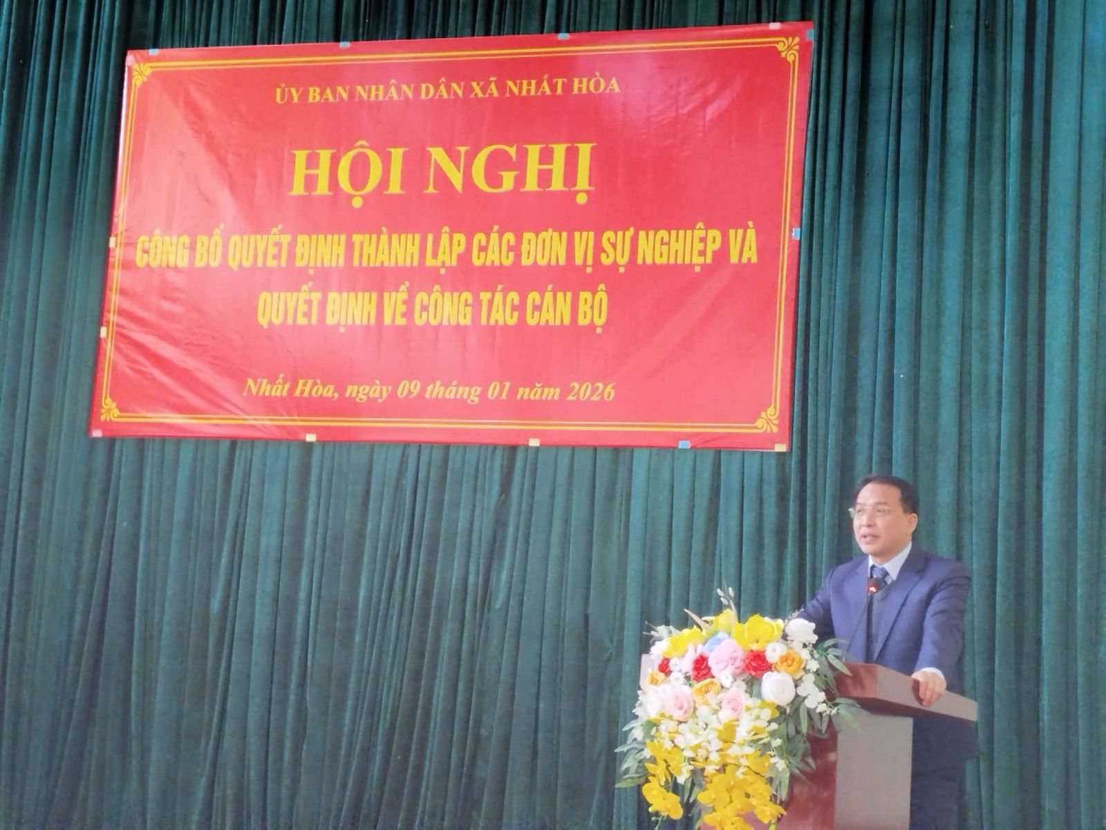 Ngày 09/01/2026, Ủy ban nhân dân xã Nhất Hòa tổ chức Hội nghị công bố các Quyết định thành lập các đơn vị sự nghiệp công lập và Quyết định về công tác cán bộ thuộc thẩm quyền của UBND xã.