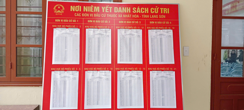 Danh sách cử tri được in rõ ràng, niêm yết trên bảng tin tại Trụ sở UBND xã và các khu vực bỏ phiếu. khu vực bỏ phiếu điểm các nhà văn hóa thôn để tạo điều kiện thuận lợi để người dân dễ dàng tiếp cận, theo dõi và kiểm tra thông tin cá nhân.