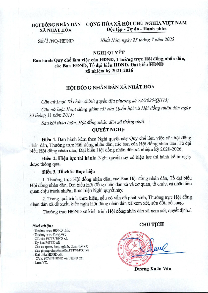 | Tiêu đề văn bản | Nghị quyết Ban hành quy chế làm việc của HĐND, tt HĐND, các ban của HĐND, đại biểu HĐND | ||